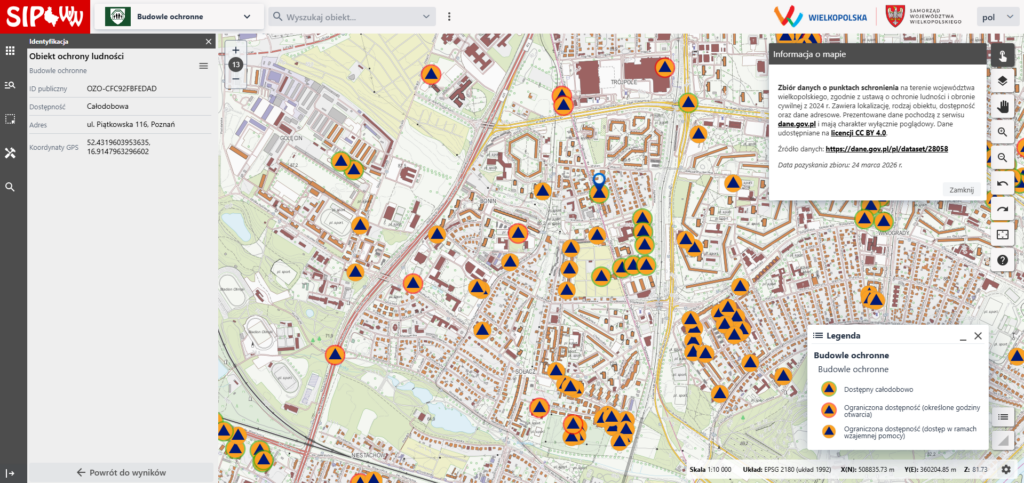 Subportal Budowle ochronne zyskał aktualną bazę danych dotyczącą bezpieczeństwa mieszkańców. Dzięki danym z serwisu dane.gov.pl, udostępniamy szczegółową mapę punktów schronienia na terenie województwa wielkopolskiego, opracowaną zgodnie z najnowszą ustawą o ochronie ludności i obronie cywilnej z 2024 r.
